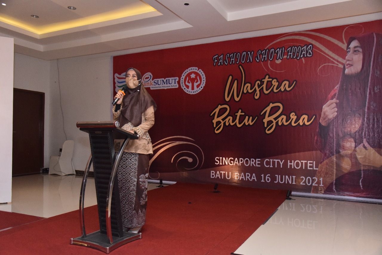Ketua Dekranasda Batu Bara Ny. Maya Indriasari Zahir menghadiri sekaligus membuka acara gelaran Lomba Fashion Show Hijab Wastra Batu Bara. Yang di gelar di Singapore City Hotel . Rabu (16/06/2021).