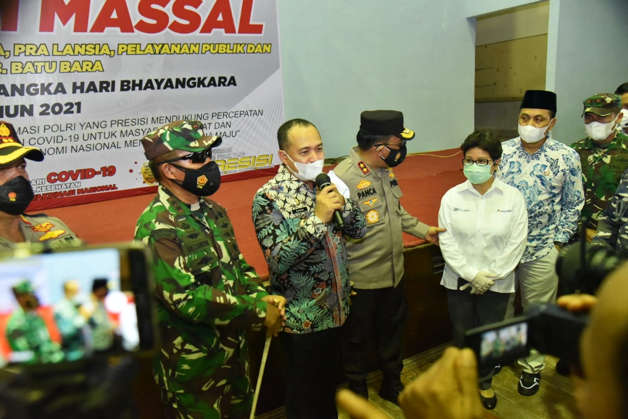 Bupati Batu Bara bersama Forkopimda Batu Bara menyambut kedatangan Kapoldasu dan Pangdam I BB dalam Rangka peninjauan vaksinasi massal \"Hari Bhayangkara Ke-75 Tahun 2021 yang bekerja sama dengan Pemerintah Kabupaten Batu Bara\"....
