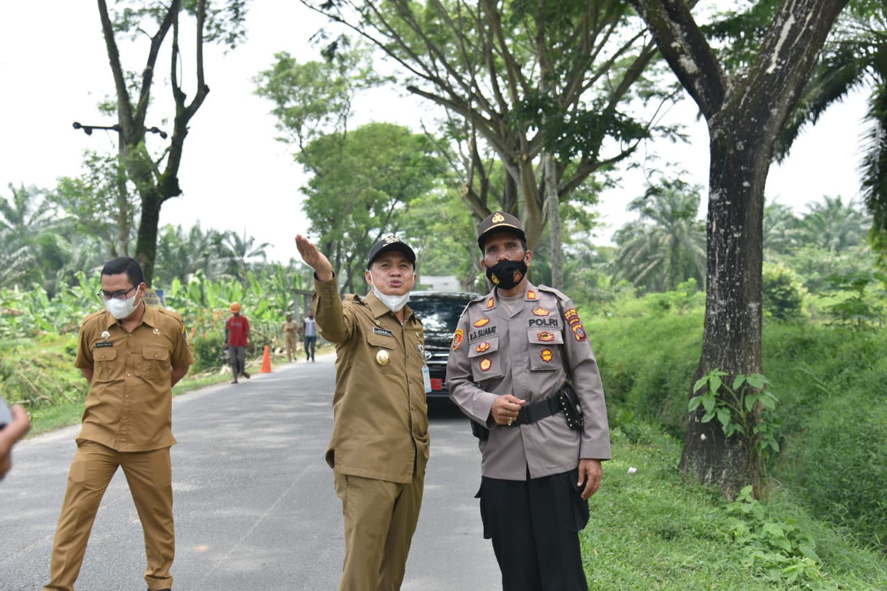 Bupati Batu Bara Ir. H. Zahir, M.AP didampingi Plt. Kepala Dinas Lingkungan Hidup Azhar, Camat Sei Balai, Kades Sei Bejangkar meninjau lokasi Jalan Masuk Desa Sei Bejangkar, Kecamatan Sei Balai. Senin (24/05/2021).