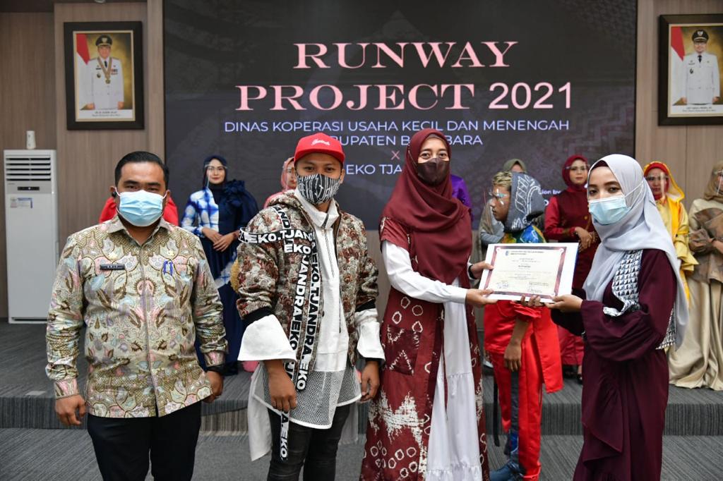 Ketua Dekranasda Batu Bara Ny. Maya Indriasari Zahir didampingi Plt. Kadis Koperasi UMKM Arif Hanafiah menutup pelatihan Fashion Desainer. Aula Rumah Dinas Bupati. Kamis (15/07/2021).