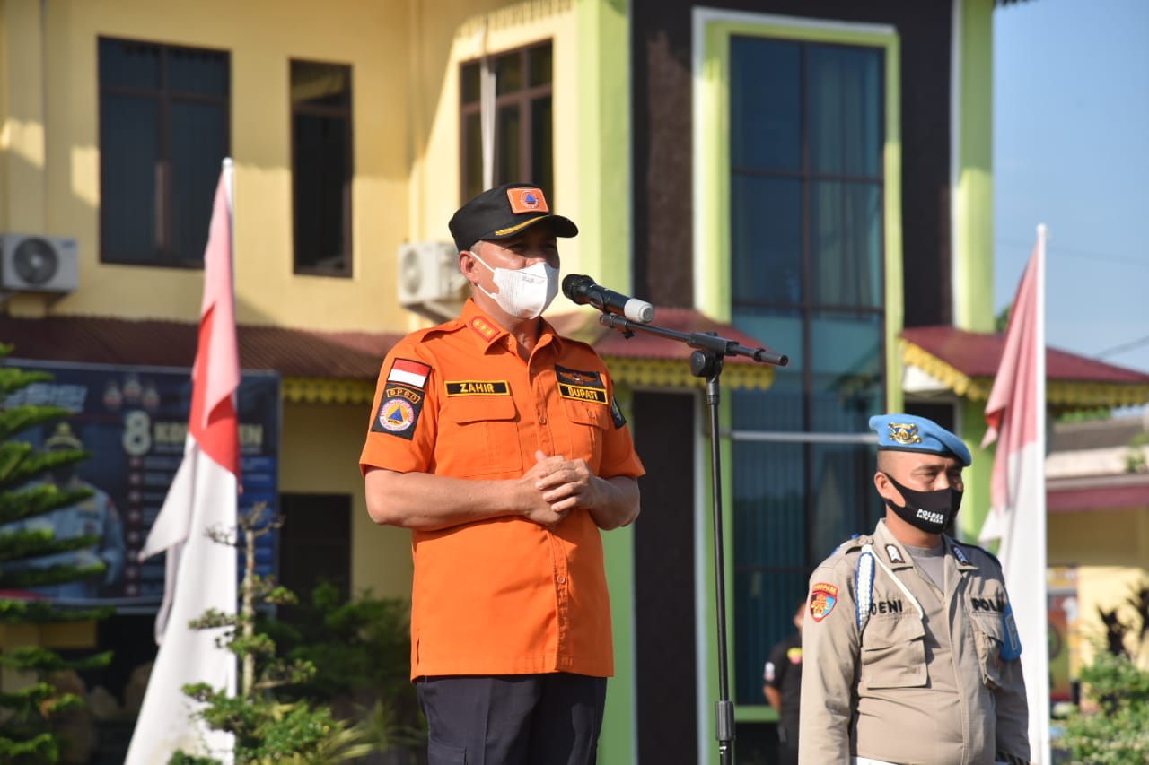 Bupati Batu Bara Ir. H. Zahir, M.AP bersama Kapolres Batu Bara AKBP. H. Ikhwan Lubis melaksanakan Apel Persiapan Penyemprotan Disinfektan. Halaman Mapolres Batu Bara Kecamatan Lima Puluh, Jumat (16/07/2021).