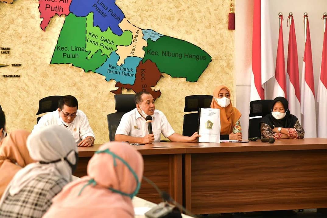 Bupati Batu Bara Ir. H Zahir, M.AP memimpin rapat pembentukan Badan Koordinasi Kegiatan Kesejahteraan Sosial (BK3S) di Aula Rumah Dinas Bupati, Komplek Tanjung Gading, Kecamatan Sei Suka, Kabupaten Batu Bara, Selasa (13/4/2021).<...