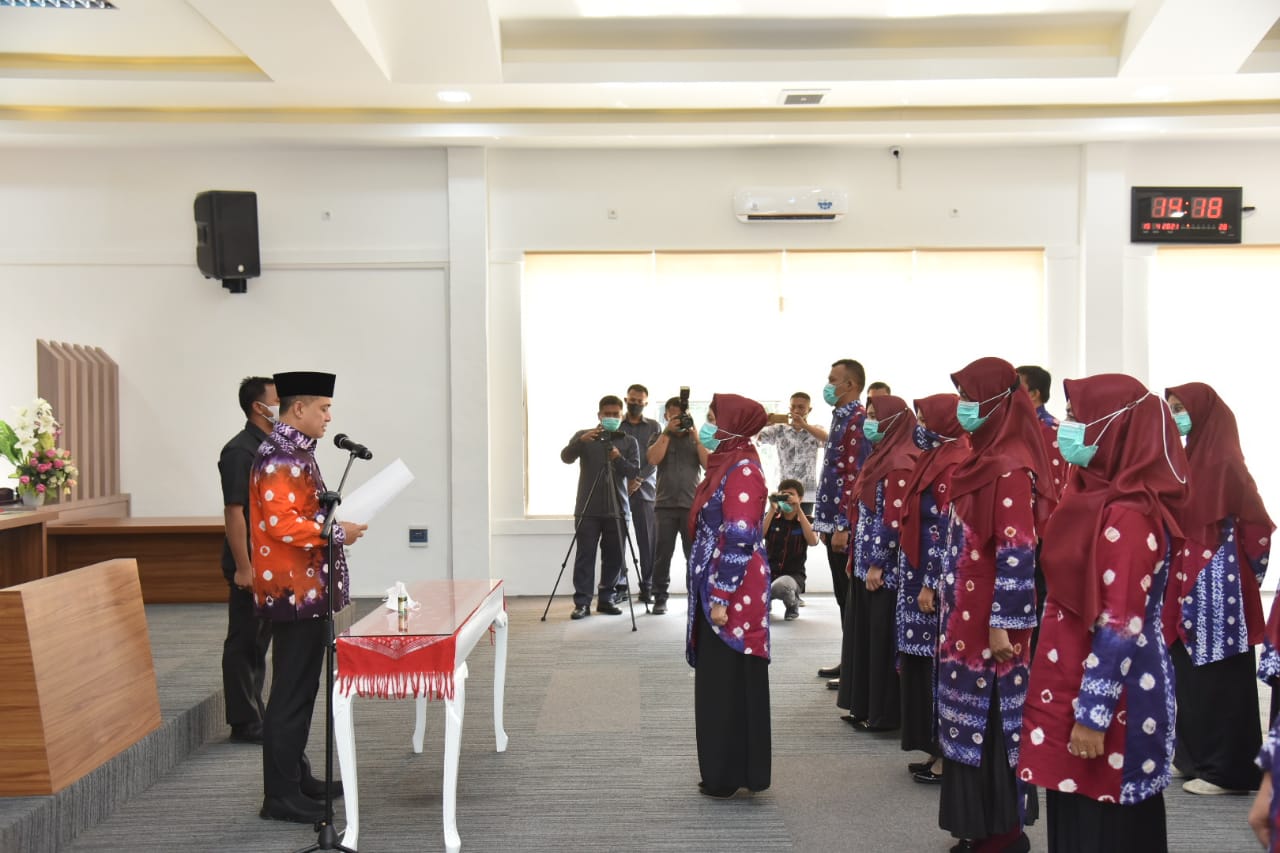 Bupati Batu Bara Ir. H Zahir, M.AP didampingi, Kadis Pendidikan Ilyas Sitorus, Kadis Kesehatan dr. Wahid, Bunda PAUD Batu Bara Ny. Maya Indriasari Zahir, Ketua POKJA PAUD Hj. Erlina, AM.Keb, Kakan Kemenag Ahmad Sofyan dan Camat S...