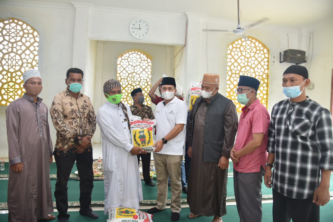 Bupati Batu Bara Ir. H Zahir, M.AP didampingi Kepala Dinas Sosial Ishak, Camat Lima Puluh Pesisir Syahrizal memberikan bantuan sembako berupa beras dan memberikan santuan berupa uang kepada para santri, Minggu(28/03/2021).