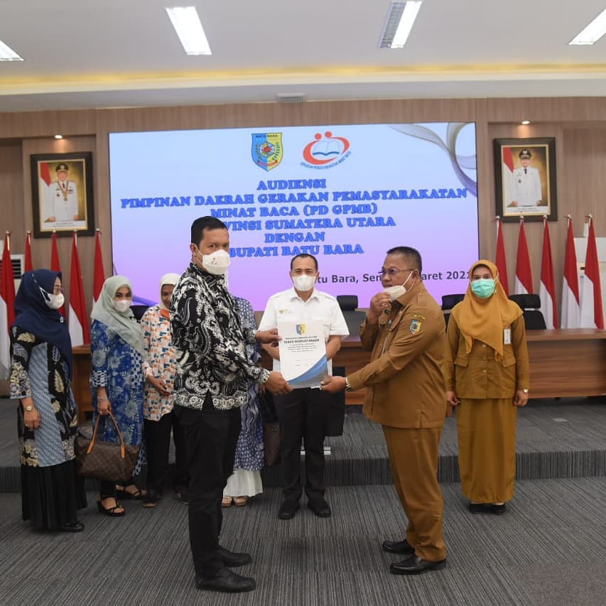 Bupati Batu Bara Ir. H Zahir, M.AP didampingi Kadis Perpustakaan Riyadi menerima audiensi dari Pengurus Daerah Gerakan Pemasyarakatan Minat Baca (PD GPMB) Provinsi Sumatera Utara. Di Aula Rumah Dinas Bupati, Komplek Tanjung Gadin...