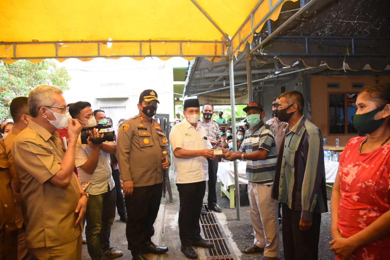 Bupati Batu Bara Ir. H Zahir, M.AP di dampingi Kepala Dinas Kesehatan, Dirut RSUD Batu Bara, Kapolres Batu Bara dan Kapolsek Indra Pura menghadiri acara penyerahan Bantuan Kartu Badan Penyelenggaraan Jaminan Sosial Kesehatan (BPJ...