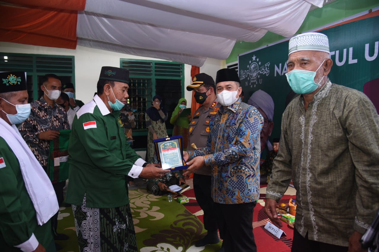 Bupati Batu Bara Ir. H Zahir, M.AP bersama Kapolres Batu Bara AKBP H. Ikhwan Lubis, ketua Pimpinan Cabang Nahdlatul Ulama (PCNU) Batu Bara H. Bakhtiar Mogoza, Kepala Kantor Kemenag, Asisten I dan Kabag Kesra Batu Bara menghadiri...