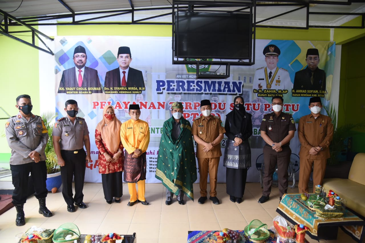 Bupati Batu Bara Ir. H Zahir,M.AP bersama ketua TP-PKK Ny. Maya Indriasari Zahir, S.E Kakanwil Kemenag Sumatera Utara Bapak Drs.H Syahrul Wirda M.M, Kakan kemenag Kabupaten Batu Bara Bapak H.Ahmad Sofian S.Ag,MA beserta Unsur For...