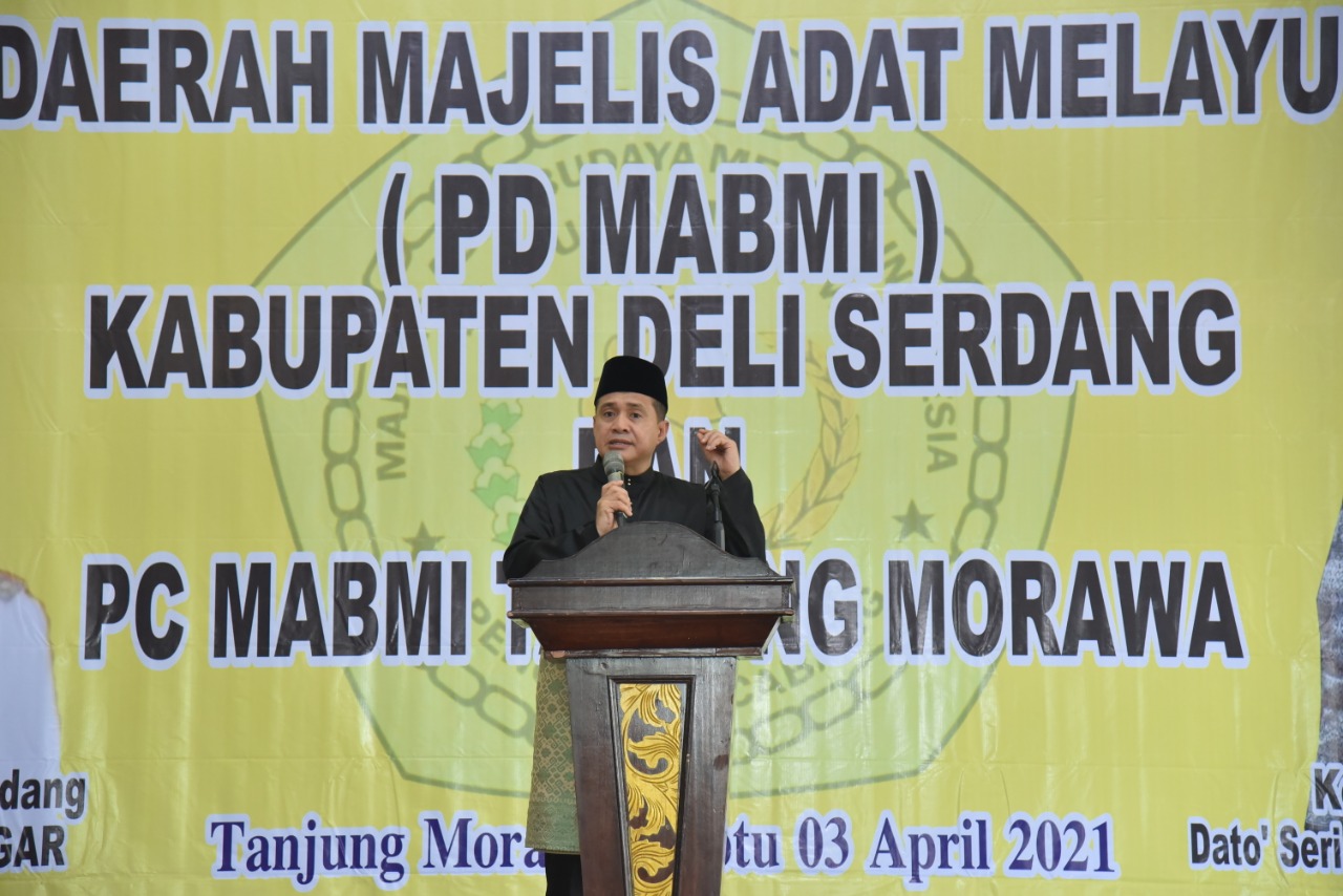 Pelantikan Pimpinan Daerah Majelis Adat Budaya Melayu Indonesia (PD MABMI) kabupaten Deli Serdang dan Pelantikan Pimpinan Cabang MABMI Tanjung Morawa di laksanakan di Gedung P3UD kabupaten Deli Serdang, Sabtu (03/04/2021).