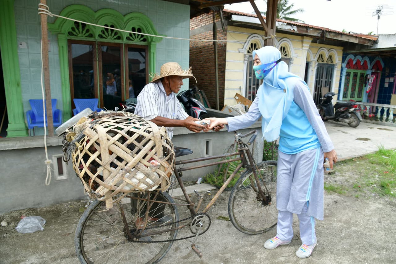 Ketua TP-PKK Ny Maya didampingi Ketua Dharma Wanita Persatuan (DWP) Batu Bara Ny Khairani Sakti Alam Siregar, Berbagi Makanan kepada Masyarakat Batu Bara, Jumat (04/12/2020)