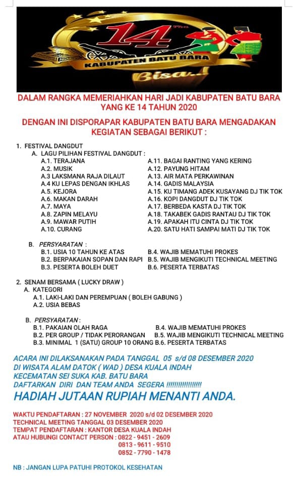 Dengan Ini Disporapar Kabupaten Batu Bara Mengadakan Kegiatan Sebagai Berikut :