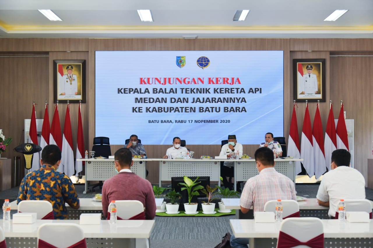 Kunjungan Kerja (Kunker) Kepala Balai Teknik Kereta Api (BTKA) Medan disambut oleh Bupati Batu Bara, Rabu (25/11/2020) di Aula Rumah Dinas Bupati, Komplek Tanjung Gading, Kecamatan Sei Suka, Kabupaten Batu Bara, Provinsi Sumatera...