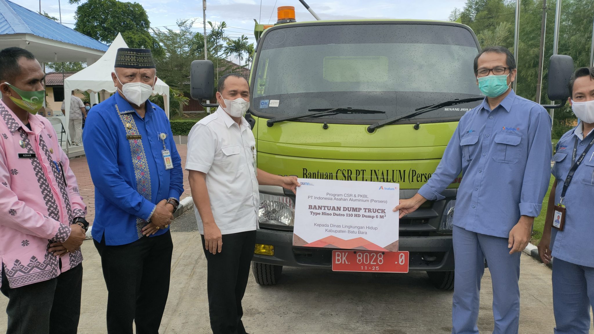 PT. Indonesia Asahan Aluminium (PT Inalum) salurkan bantuan Corporate Social Responsibility (CSR) dan PKBL, 1 unit Dump Truck Type Hino Dutro 110 HD Dump 6 M3 kepada Pemerintah Kabupaten Batu Bara, Kamis (26/11/2020) di Aula Ruma...