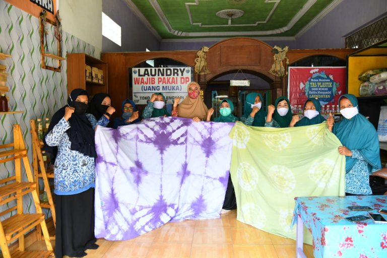 Ketua Dekranasda sekaligus Ketua TP-PKK Batu Bara Ny. Maya Indrasari Zahir, S.E di dampingi Kabid Perindustrian Heny Dahliana S.T melakukan kunjungan ke Usaha Batik Jumput yang berada di Desa Binjai Baru, Kamis (17/09/2020).