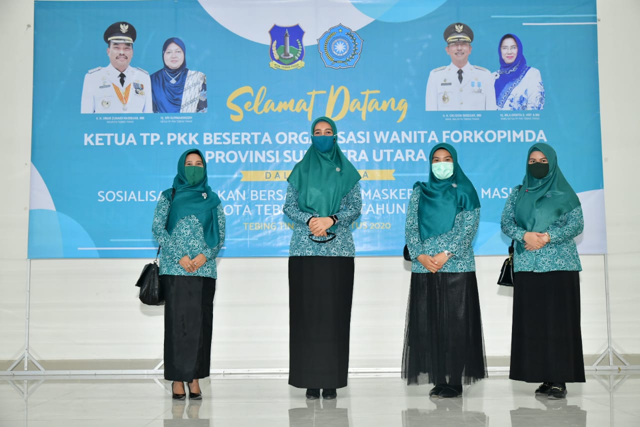 Ketua TP-PKK Provinsi Sumatera Utara (Sumut) Ny Hj. Nawal Edy Rahmayadi membuka Sosialisasi Pemakaian Masker Demi Pencegahan Penyebaran Pandemi Covid-19 di Kota Tebingtinggi dalam Gerakan Bersama Pakai Masker (Gebrak masker...