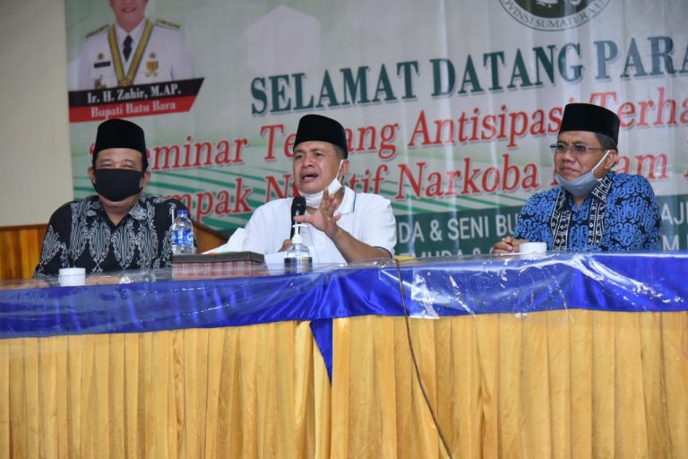 Bupati Batu Bara Ir. H. Zahir M.AP menghadiri acara seminar tentang Antisipasi Terhadap Bahaya Narkoba dampak negatif narkoba dalam berbagai Perspektif, acara di gedung aula banyu wangi di Kecamatan Lima Puluh Kabupaten Bat...