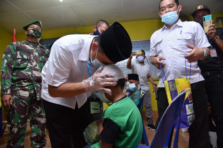 Bupati dan Kapolres Batu Bara kunjungi warung anak yatim dan memberikan bantuan sembako serta santuni anak yatim di Desa Aras, Kecamatan Air Putih, Kabupaten Batu Bara, Provinsi Sumatera Utara, Rabu (29/7).