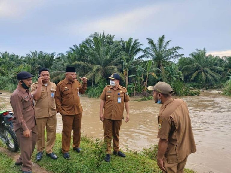 Bupati Batu Bara Ir. H. Zahir, M.AP bersama Kadis PUPR Khairul Anwar tinjau sungai dalu dalu di desa suka raja Kecamatan Air putih Kabupaten Batu Bara,