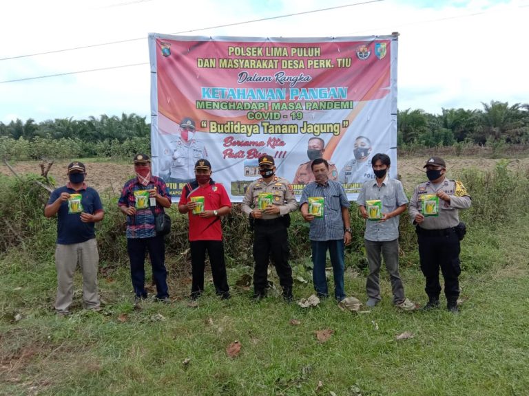 Kapolsek Lima Puluh Iptu Rusdi Polres Batu Bara bersama Camat Datok Lima Puluh Ngatirun melakukan penanaman jagung dalam rangka menjaga ketahanan pangan situasi pandemi covid-19 di Desa Tanah Itam Ulu Kec Datok Lima Puluh, jumat...