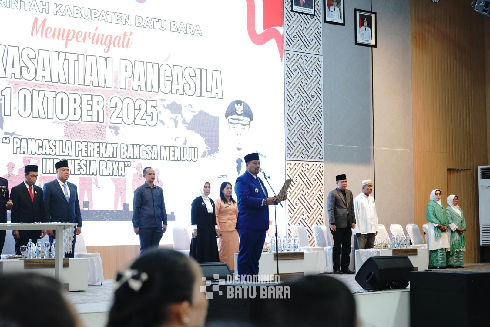 Batu Bara – Bupati Batu Bara Bapak H. Baharuddin Siagian, SH, M.Si memimpin Upacara Peringatan Hari Kesaktian Pancasila Tahun 2025 di Aula Kantor Bupati Batu Bara, Rabu (1/10/2025).