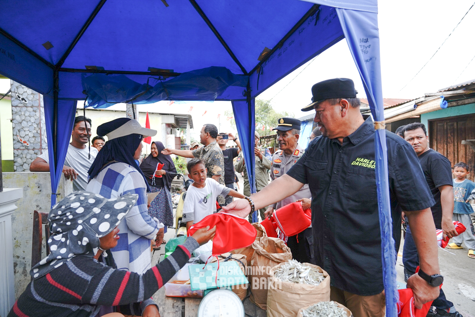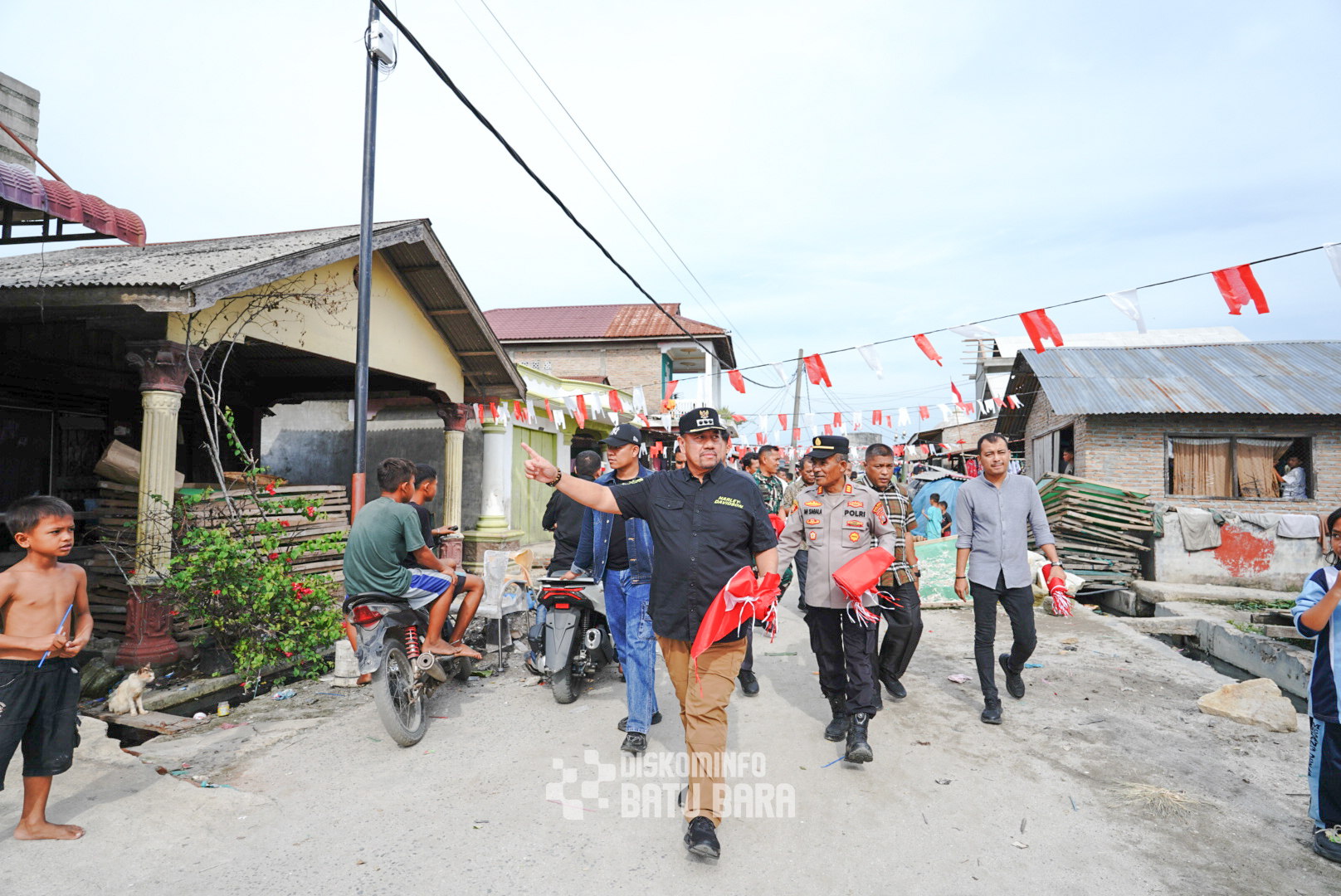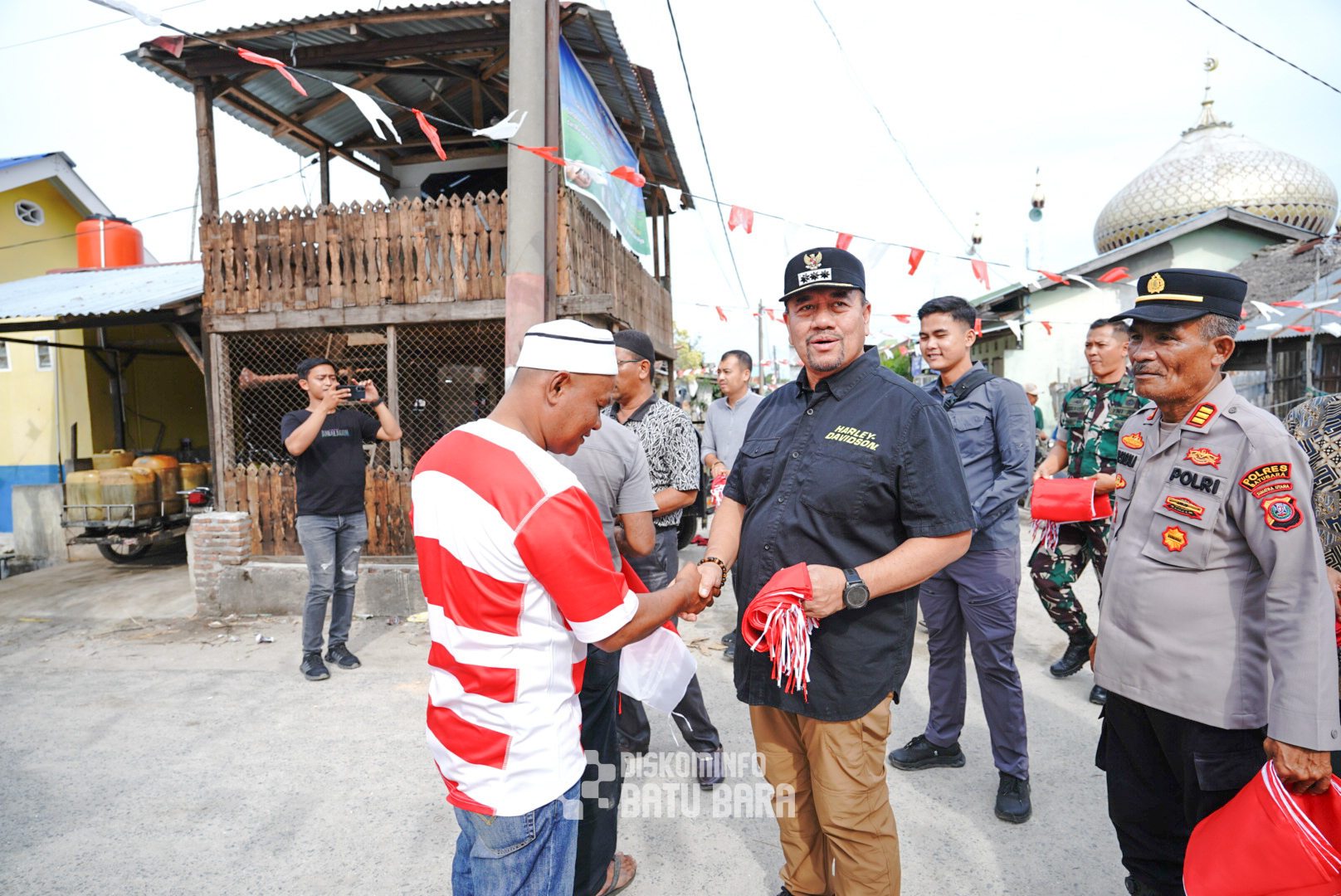 Tanampak Semangat Nasionalisme, Bupati dan Wabup Batu Bara Bagikan Bendera Merah Putih